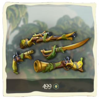 Tbf it's not that hard to find it, look through the weapon shop, not there; look through the emporium; there it is, or, what a concept; Google things, that's what I did. "Sea of Thieves banana set" and it's right there, second link from the top. You don't have to know a lot you just have to use common sense.
